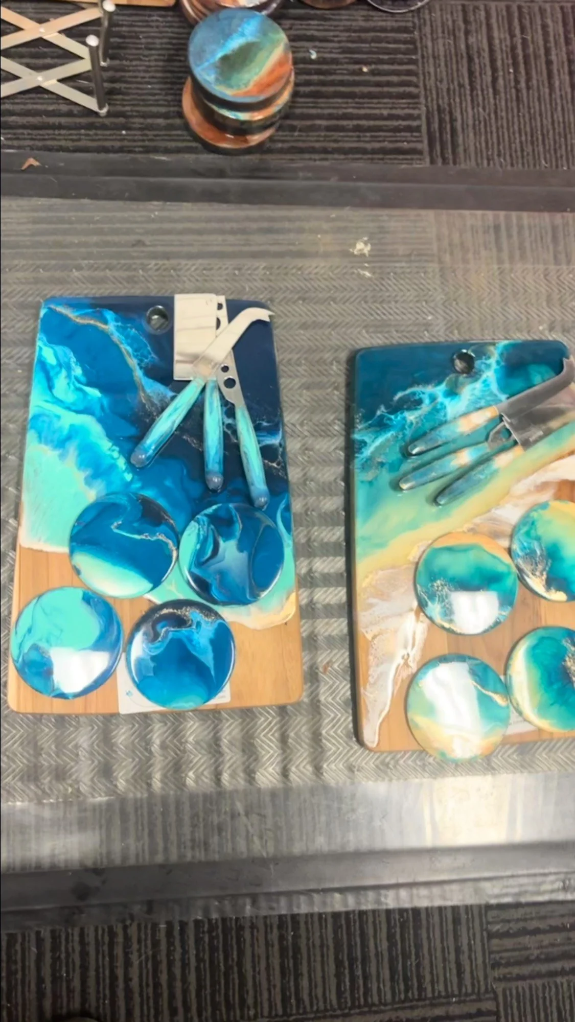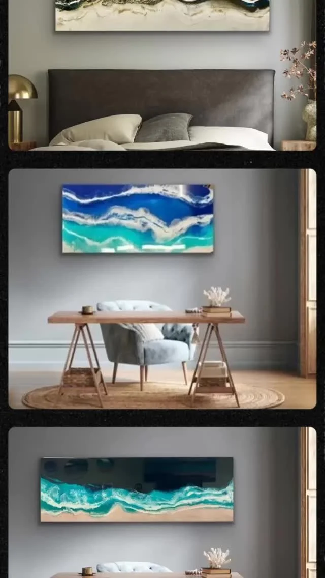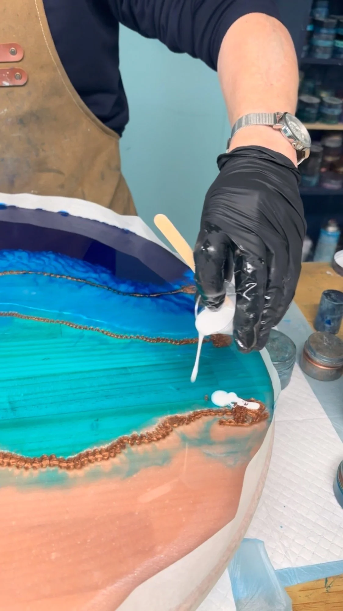 View large-scale abstract and seascape resin artworks in the studio/gallery. Commissions welcomed — please get in touch via email.