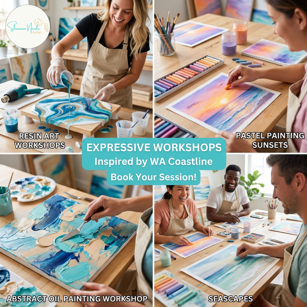 Create soft, atmospheric seascapes and glowing sunset artworks in this pastel painting workshop. Learn blending, layering, and colour techniques while capturing light and movement. Perfect for beginners and creatives. A relaxing pastel art workshop in Perth, WA.